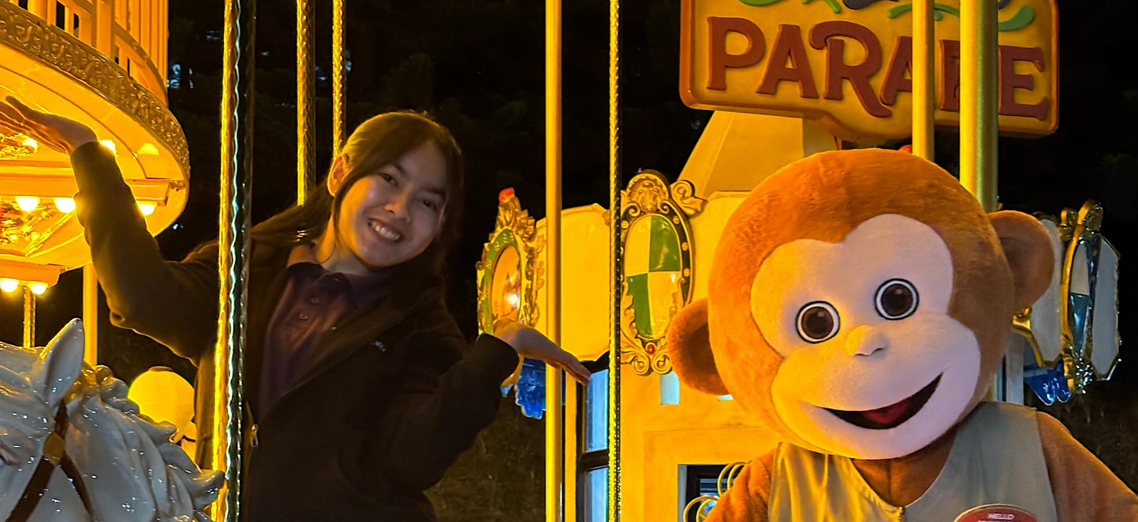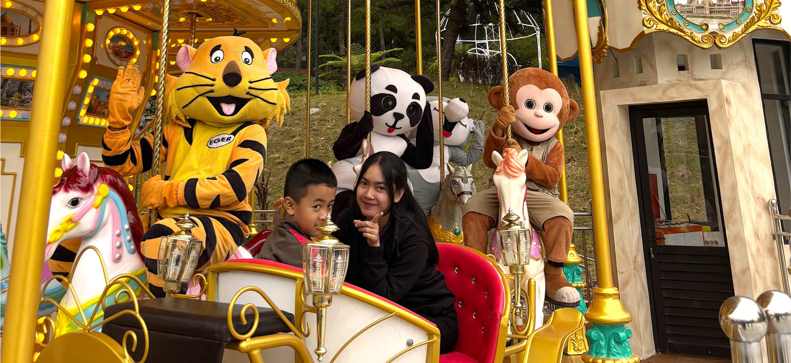 Feel the joyful and romantic atmosphere of Royal Parade, a classic carousel where families can create sweet memories together. Gentle up-and-down movements bring a sense of calm as you spin around on colorful horses, a hot-air balloon, and magical carriages, surrounded by twinkling lights and a beautiful garden view.